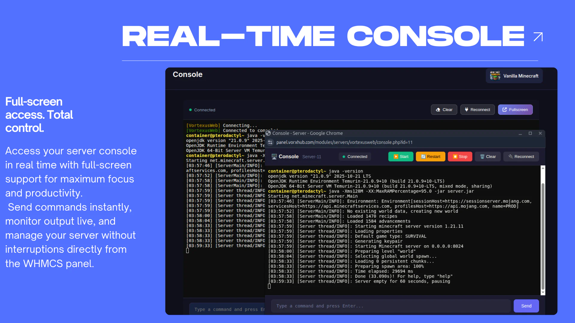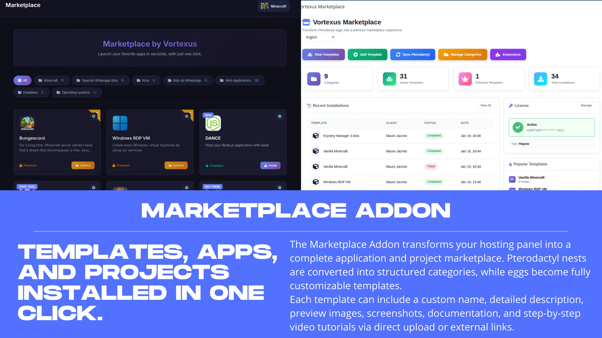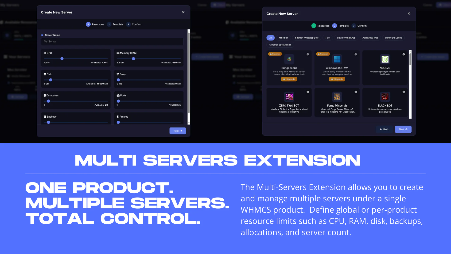 VortexusWeb is a complete WHMCS integration module for Pterodactyl Panel, providing seamless game server provisioning, a beautiful template marketplace, and advanced multi-server management.